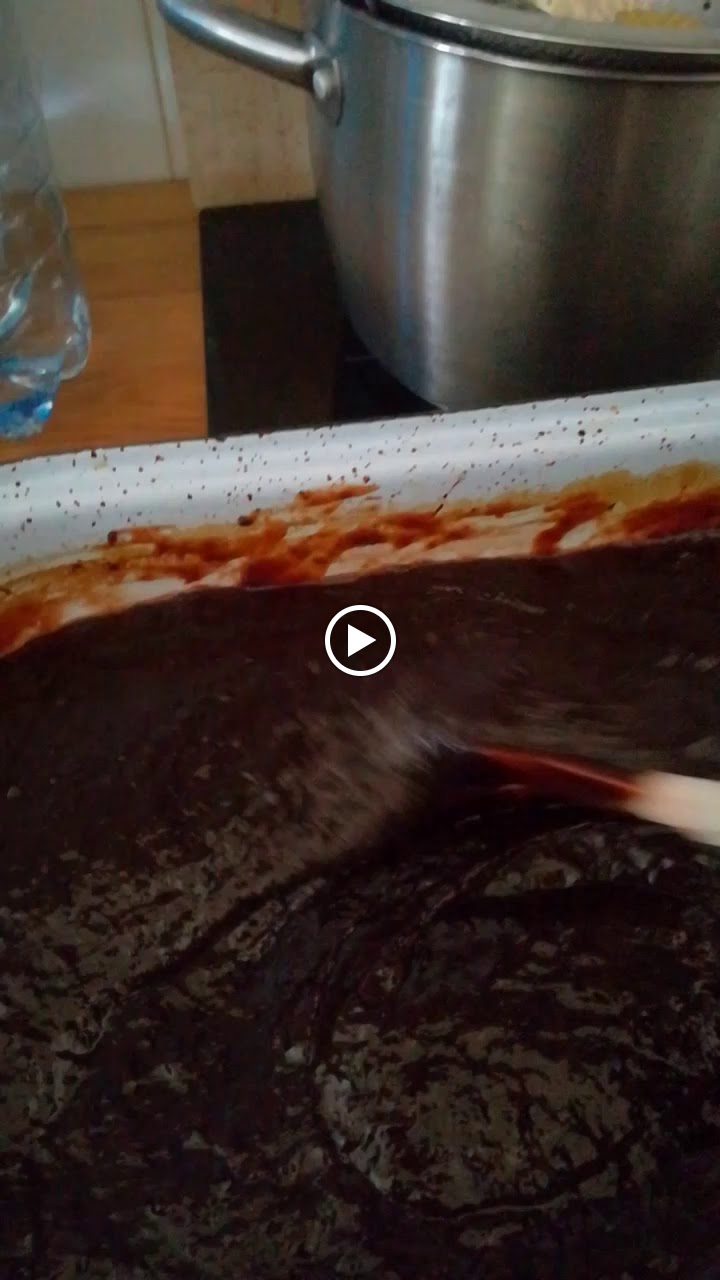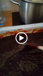 Troubu předehřejeme na 150°C a horkou směs opatrně přelijeme do velkého hlubokého pekáče